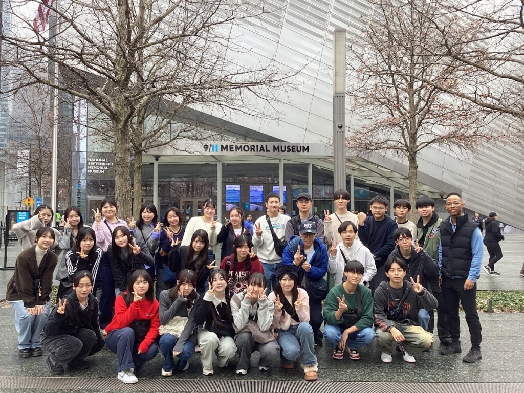 ウォール街は日曜日のため静かな様子であったが、グラウンド・ゼロでは、犠牲者の名前が刻まれたプレートに、その方の誕生日に遺族が白い花を添える習慣があることを知った。エネルギッシュな都市である一方で、深い悲しみの歴史を抱えた街でもあることに、生徒たちも心を動かされている様子であった。