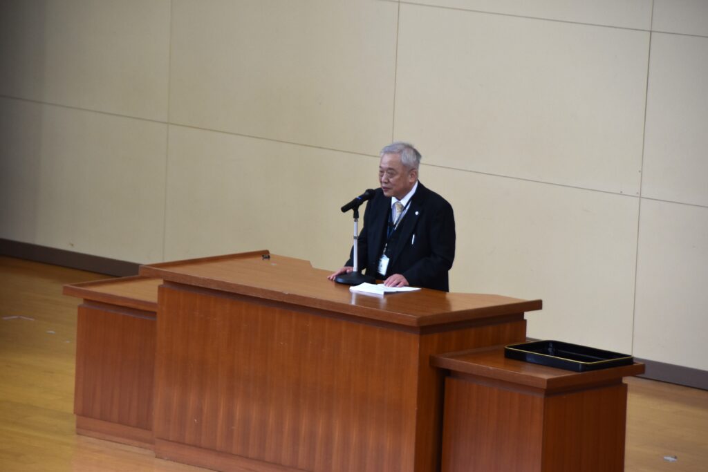 離任式には、旭善仁先生、石井一也先生が出席され、それぞれ感謝と明訓生を応援するメッセージなどを述べられ、拍手に送られて退場されました。
