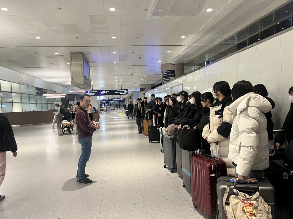 入国審査で多くの生徒がビビり始め、順番待ちで徐々に生徒のテンションが下がっていくのを感じた。緊張しながらも全員が無事に終えることができた。(アメリカの審査はなかなか手強い)